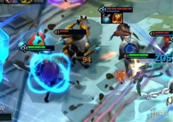 纳尔对一个方向上的敌人造成伤害,他当前的攻击目标受到额外伤害。这个伤害的数额相当于纳尔10%总攻击力,但不低于纳尔170%的额外攻击力。