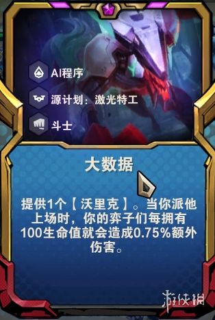 套路介绍:首先和大家介绍我们这个套路的主角,S8.5新增的四费卡-狼人沃里克,它的羁绊是AI程序、斗士和源计划。